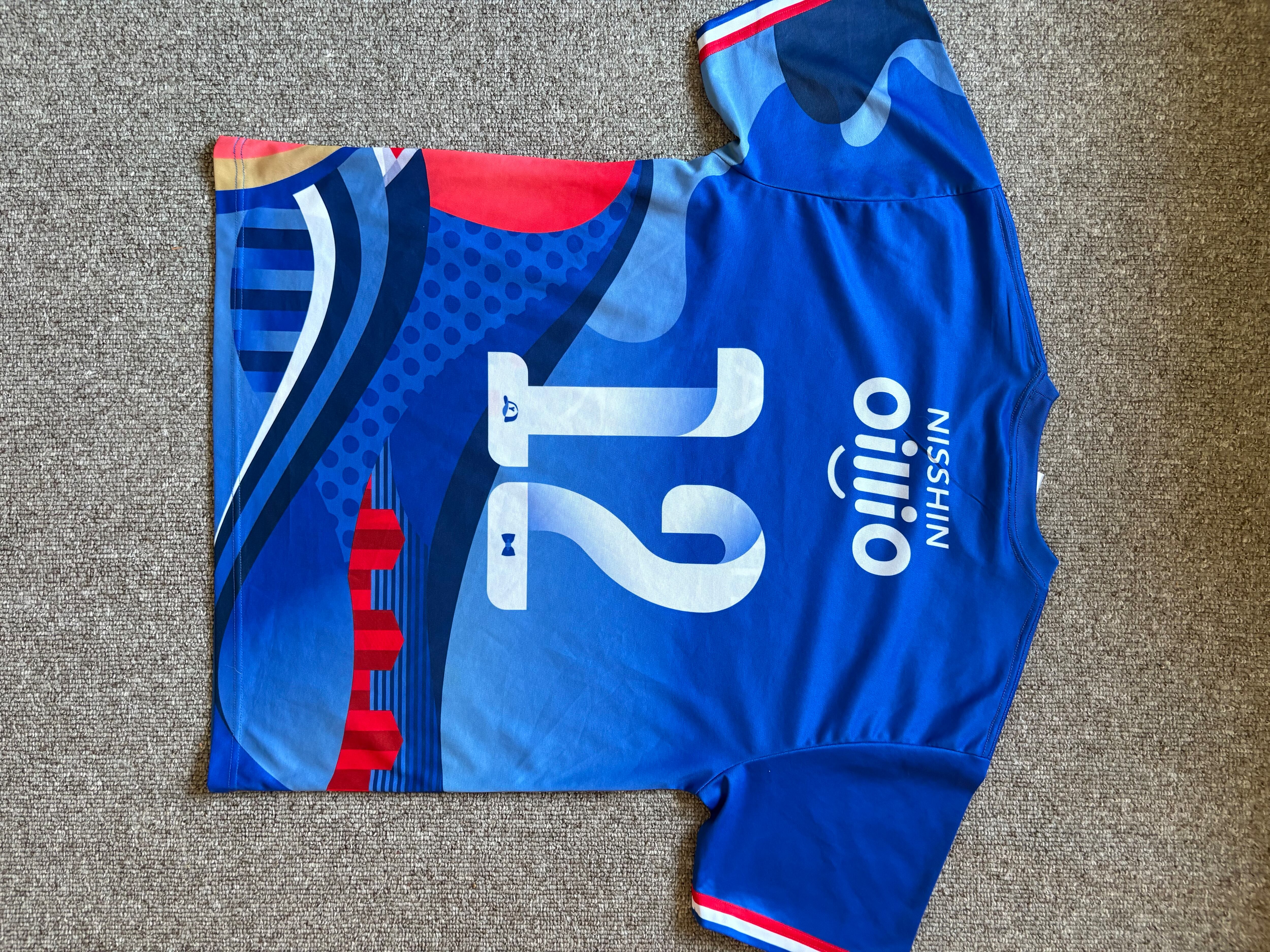 • スポンサー:胸に「NISSAN」、肩に「DRAFT」、背面に「NISSHIN」「oioi」などのスポンサー名。