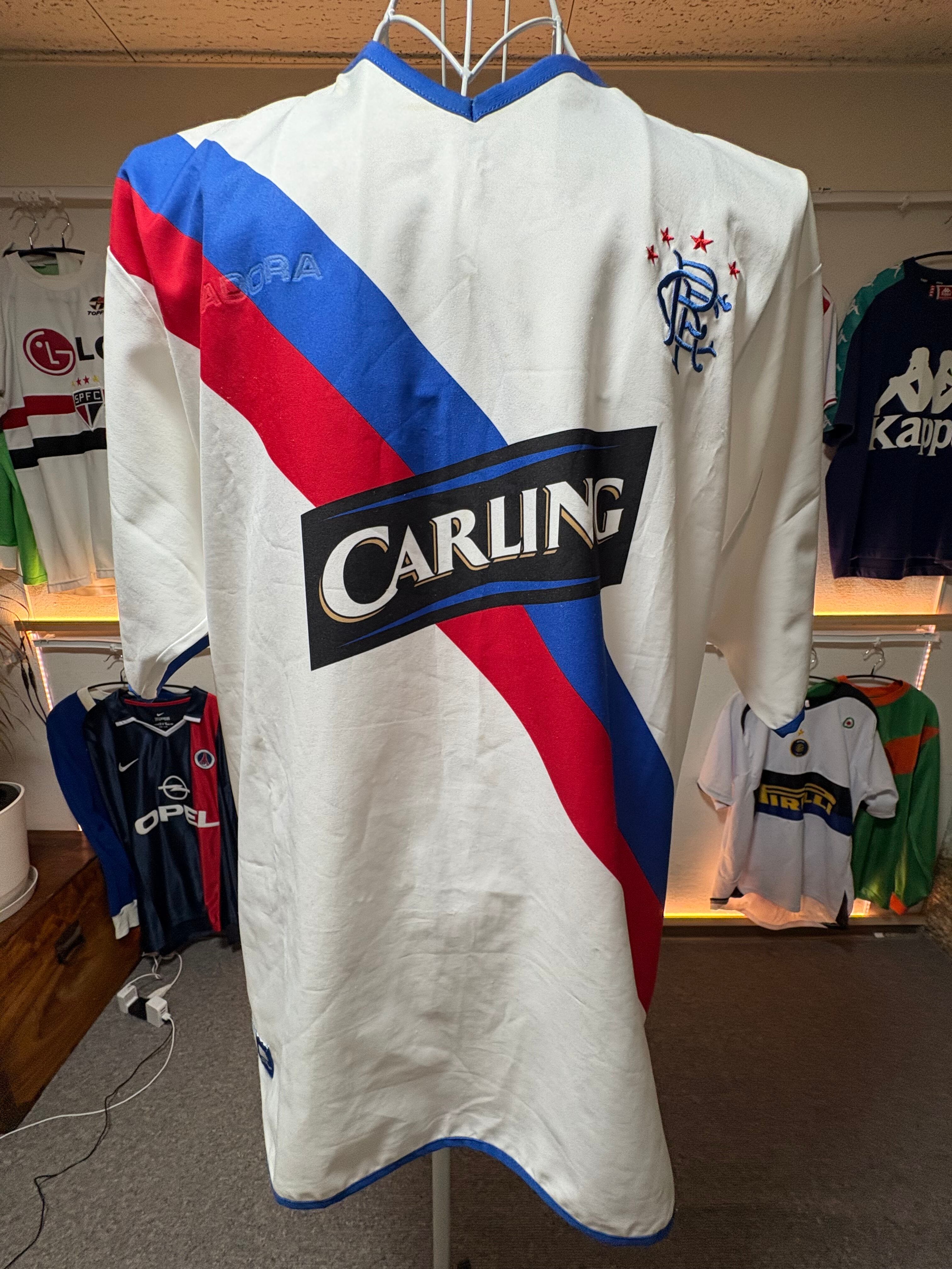 • Chest sponsor "CARLING": Common to both Old Firm clubs (Rangers & Celtic) at the time.