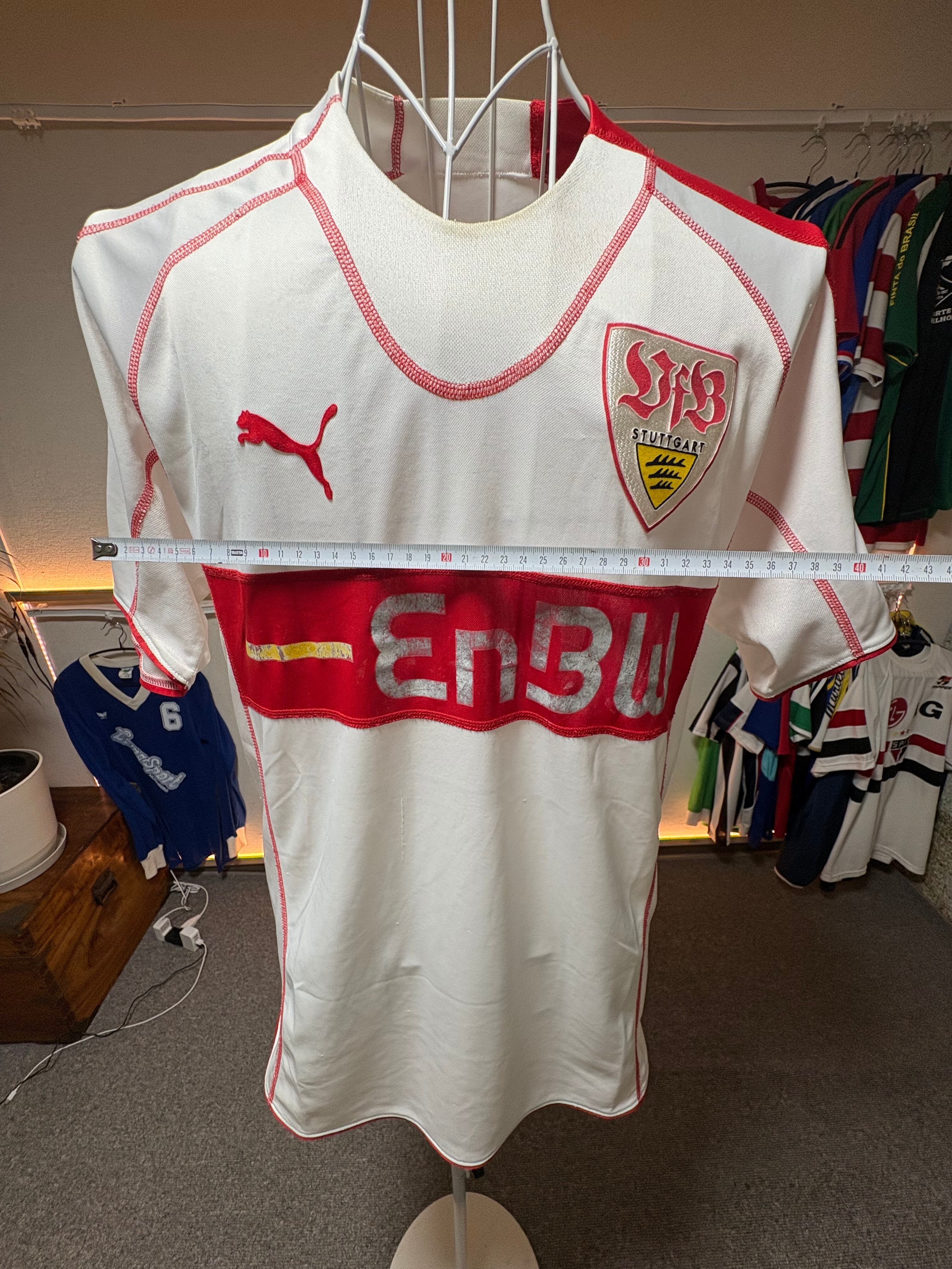 This "PUMA x EnBW" combination was used on the home uniform from 2006-2009. It is a particularly memorable design, as Stuttgart won the Bundesliga championship in the 2006-07 season.