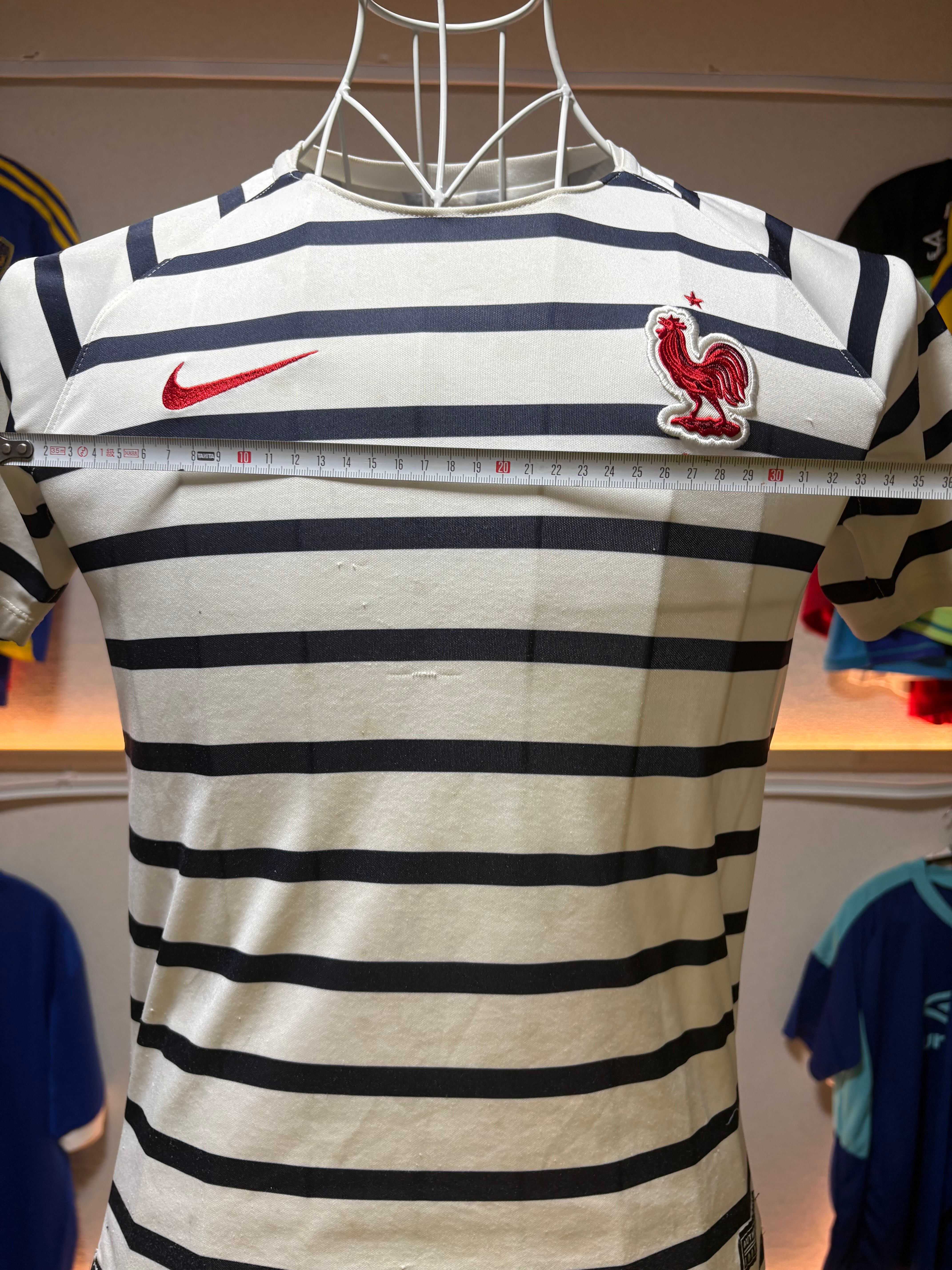 • The red rooster (a retro embroidered design) on the front is distinctive, featuring a simpler, more classic style rather than the usual F.F.F. (French Football Federation) crest.