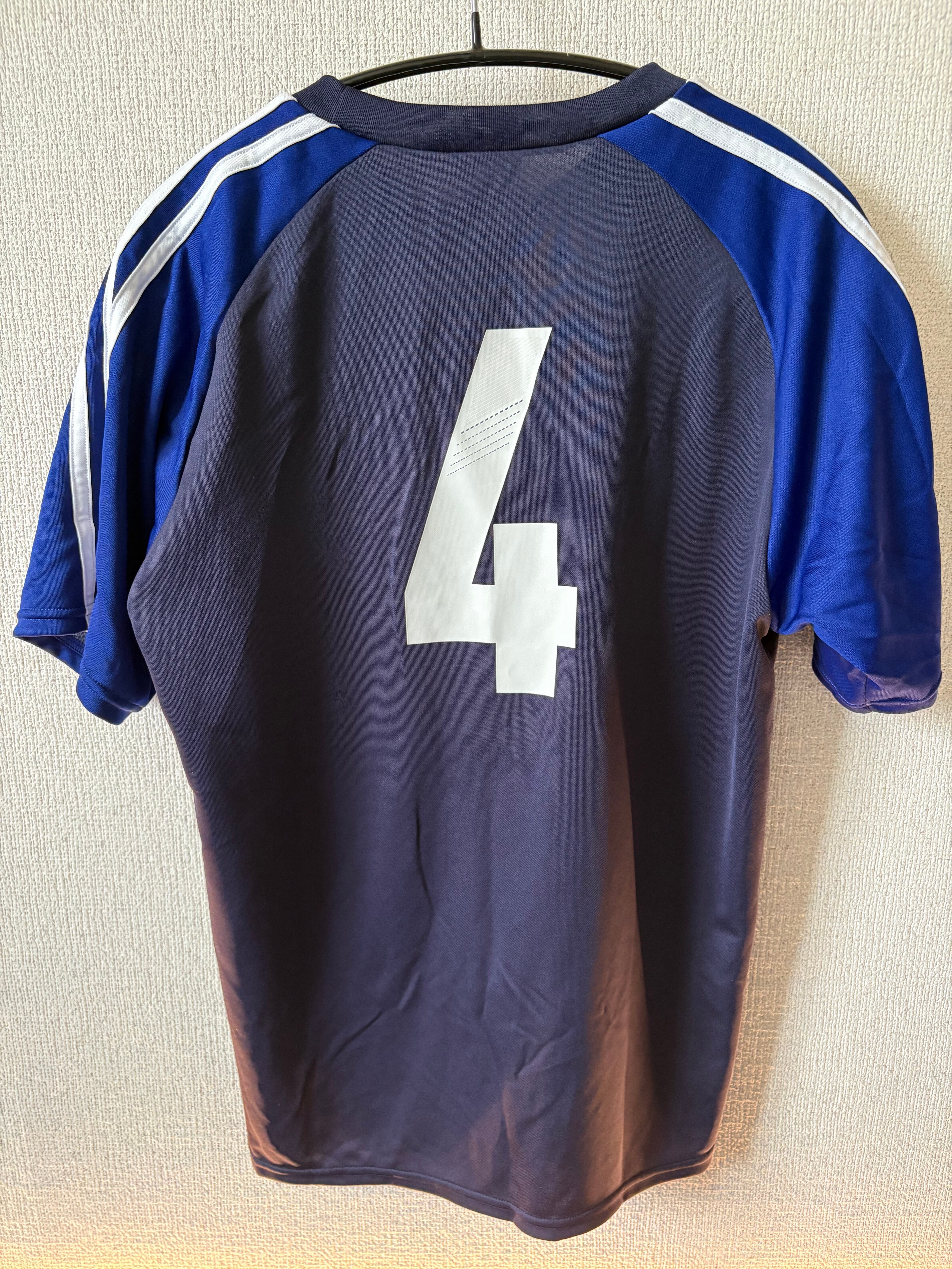 • デザイン:濃紺を基調に、中央に赤いストライプ、両肩に白い3本ライン