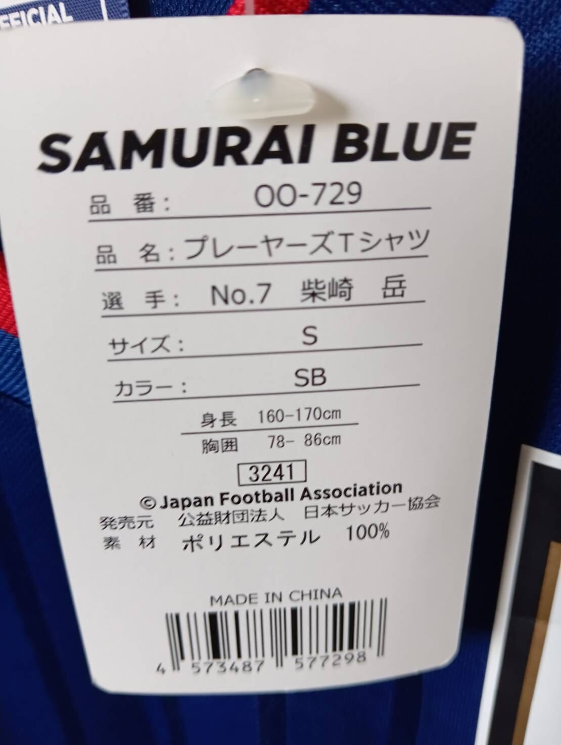 これは、2018年ロシアW杯前後の時期に販売されていた日本代表の応援用プレーヤーズTシャツ(柴崎岳モデル) です。
