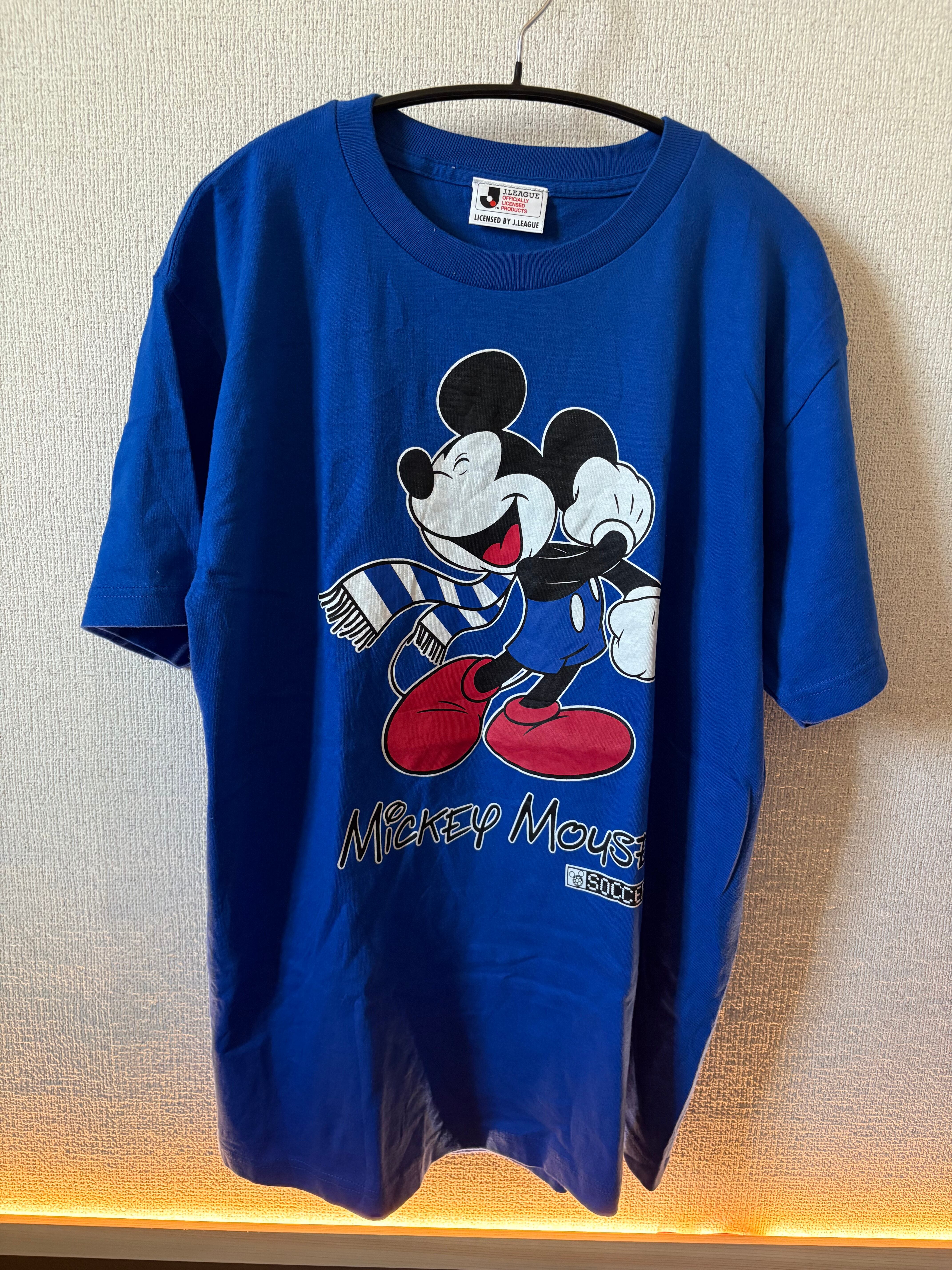 ミッキーマウスがサッカーマフラーを巻き、ユニフォーム姿で描かれているデザイン。下部には「Mickey Mouse」や「SOCCER」のロゴ入り。
